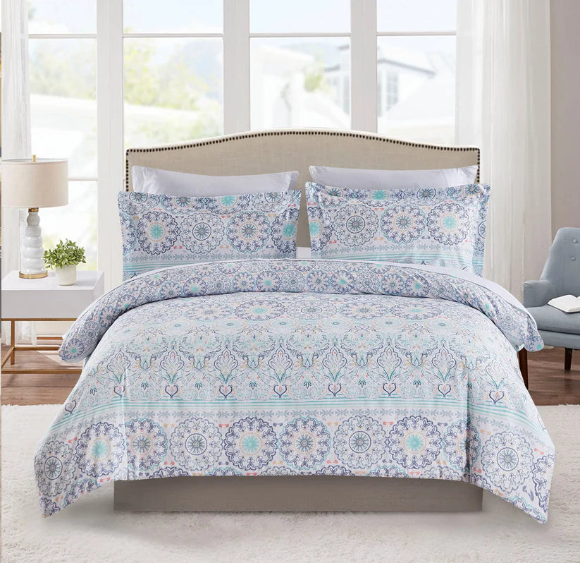 The duvet cover set is made of 100% brushed microfiber fabric, printed. It is durable, breathable, fade-resistant & wrinkle-free.